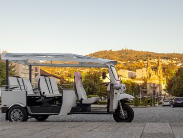 Explore Guimarães in a comfortable, fun, and sustainable way with our Guided Tours in Electric Tuk-Tuk.